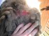 Red Bottom and Chest: Please could you advise me, just noticed one of our bluebells has a red bottom and chest, she has lost her feathers from these sore looking areas.