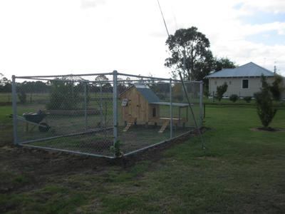 Being a first time Chook owner I find it awesome that there are so many people willing to share information and advice. Here are some photographs of our coop (the whole project with the run only cost us just over 100 bucks), we built it out of old packing crates and recycled corrigated iron. The run is made out of recycled fencing that was being taken out, I know it looks a bit like a prison but it has to keep out foxes and crows, we have planted passionfruit vines around it to soften the edges. Our chooks are happy and so are we.